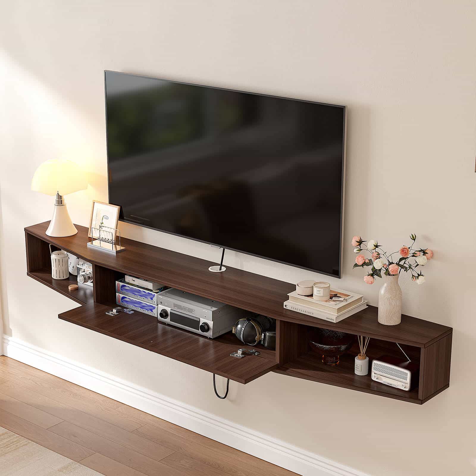 If you want to make your living room feel bigger and more stylish, it’s time to get your TV setup off the floor. Our wall-mounted modern TV stand creates that light, ‘floating’ look everyone loves, giving you a minimalist vibe while still providing plenty of room to store your devices.