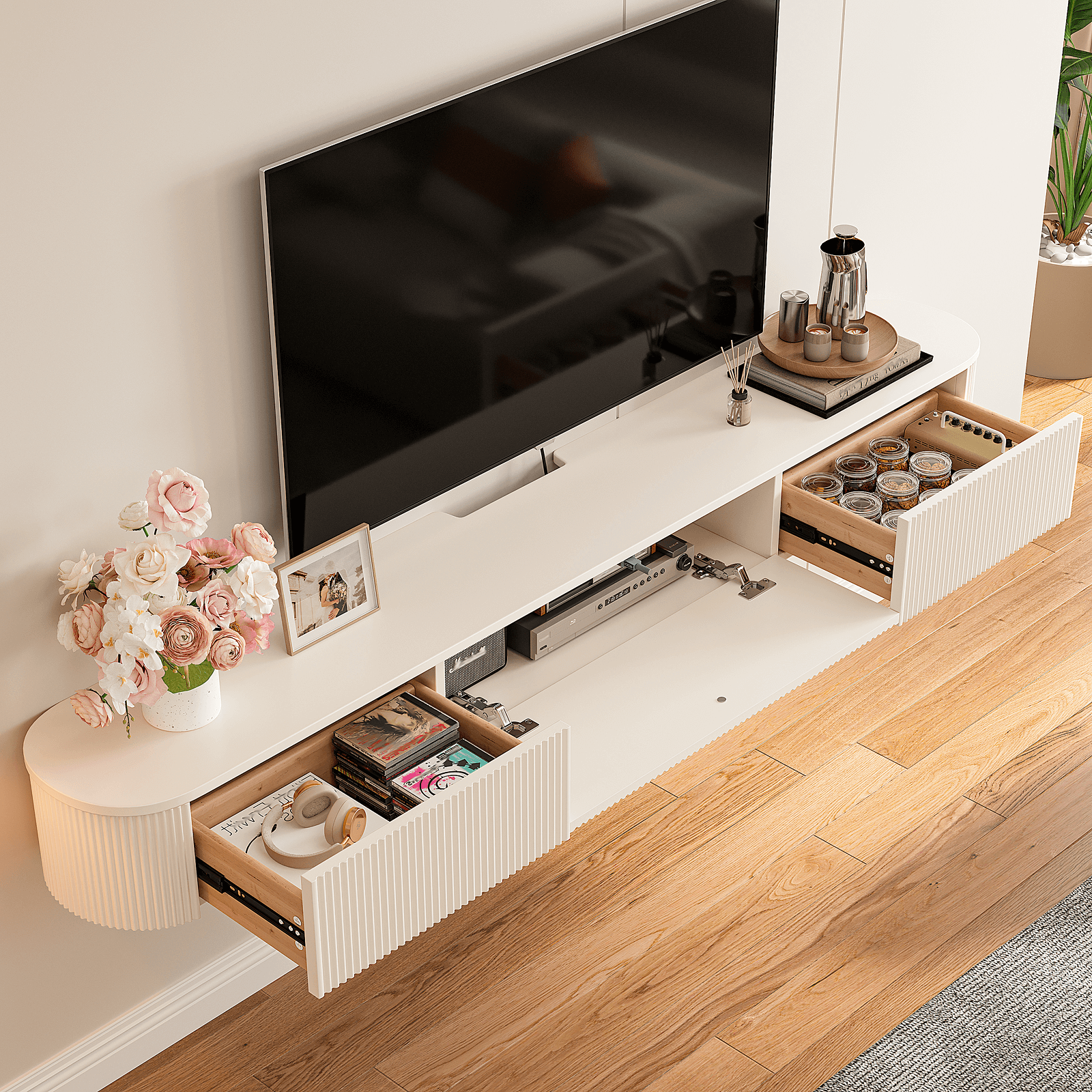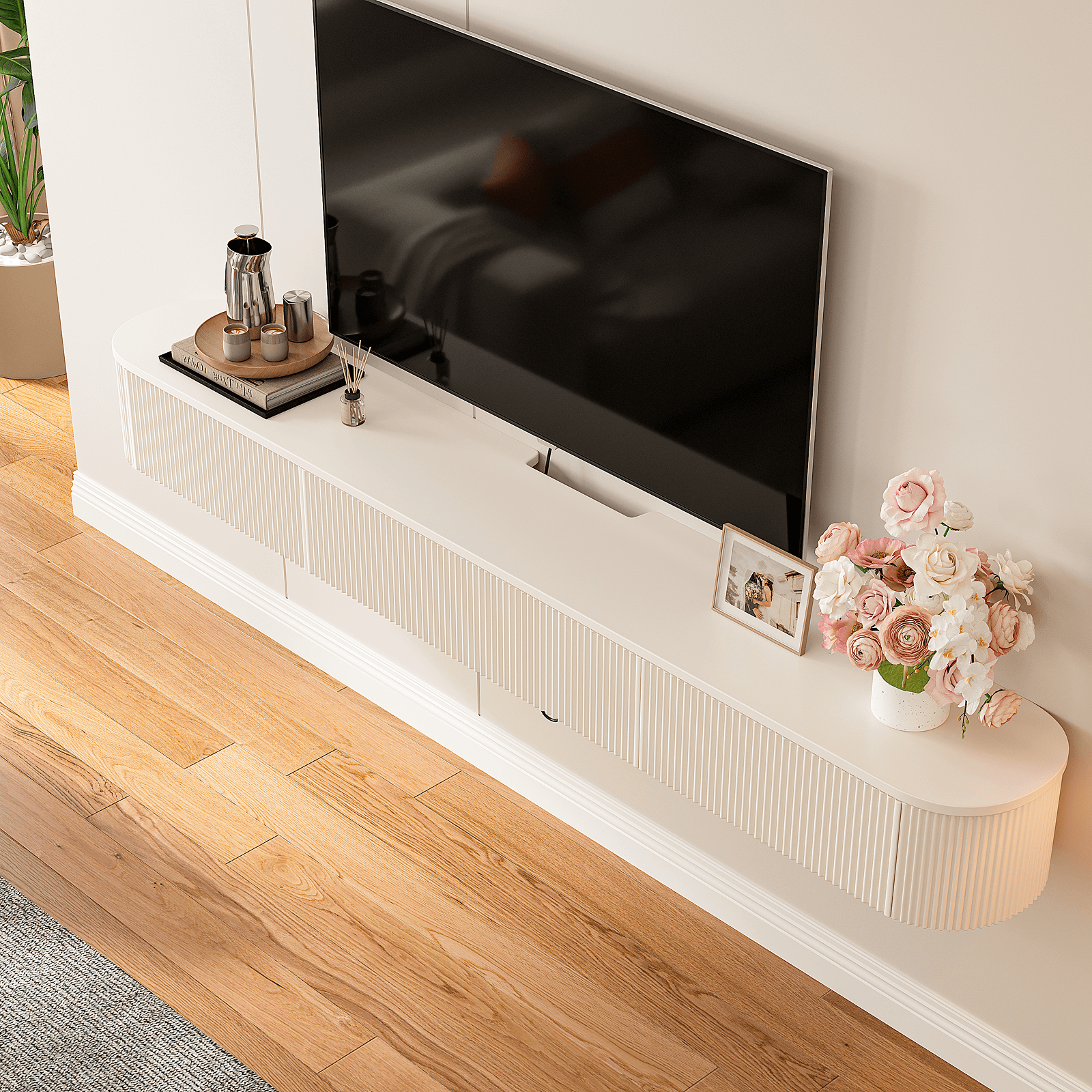 Elevate Your Space – The Modern Floating TV Stand White Color with Elegant Fluted Design